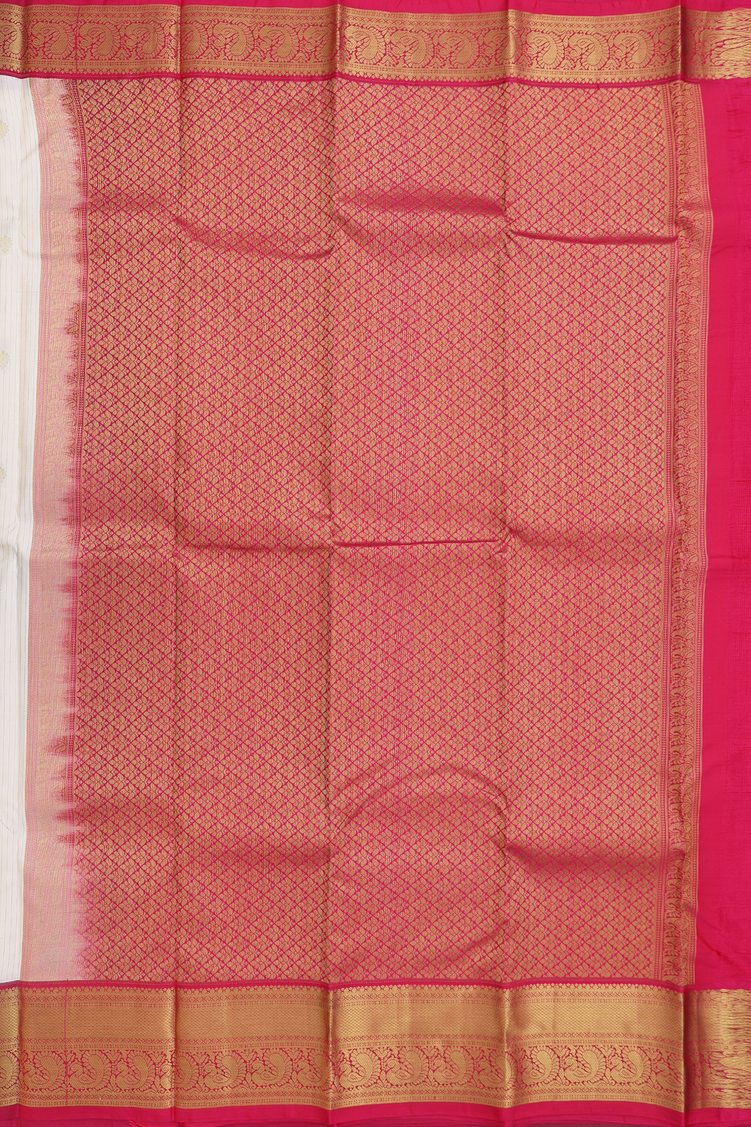 Kanchipuram Silk Saree In Beige With Stripes Design