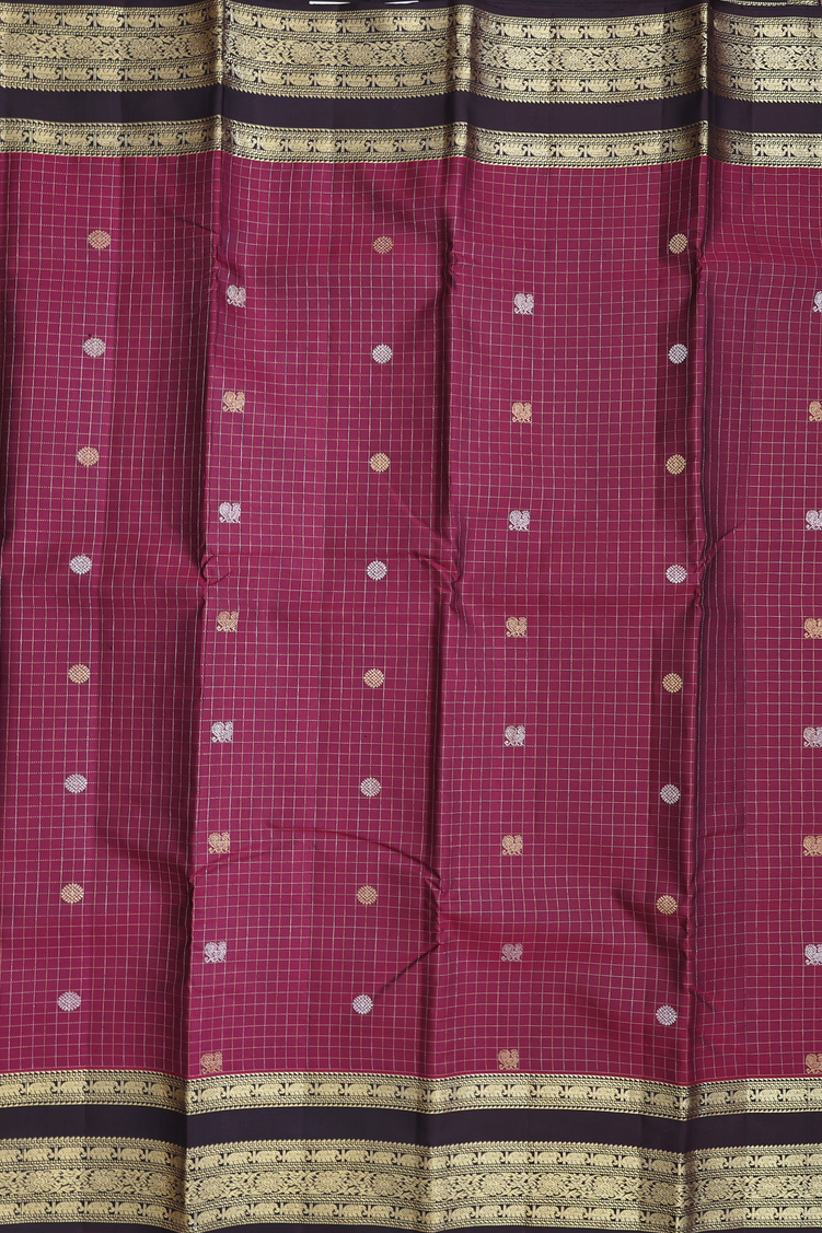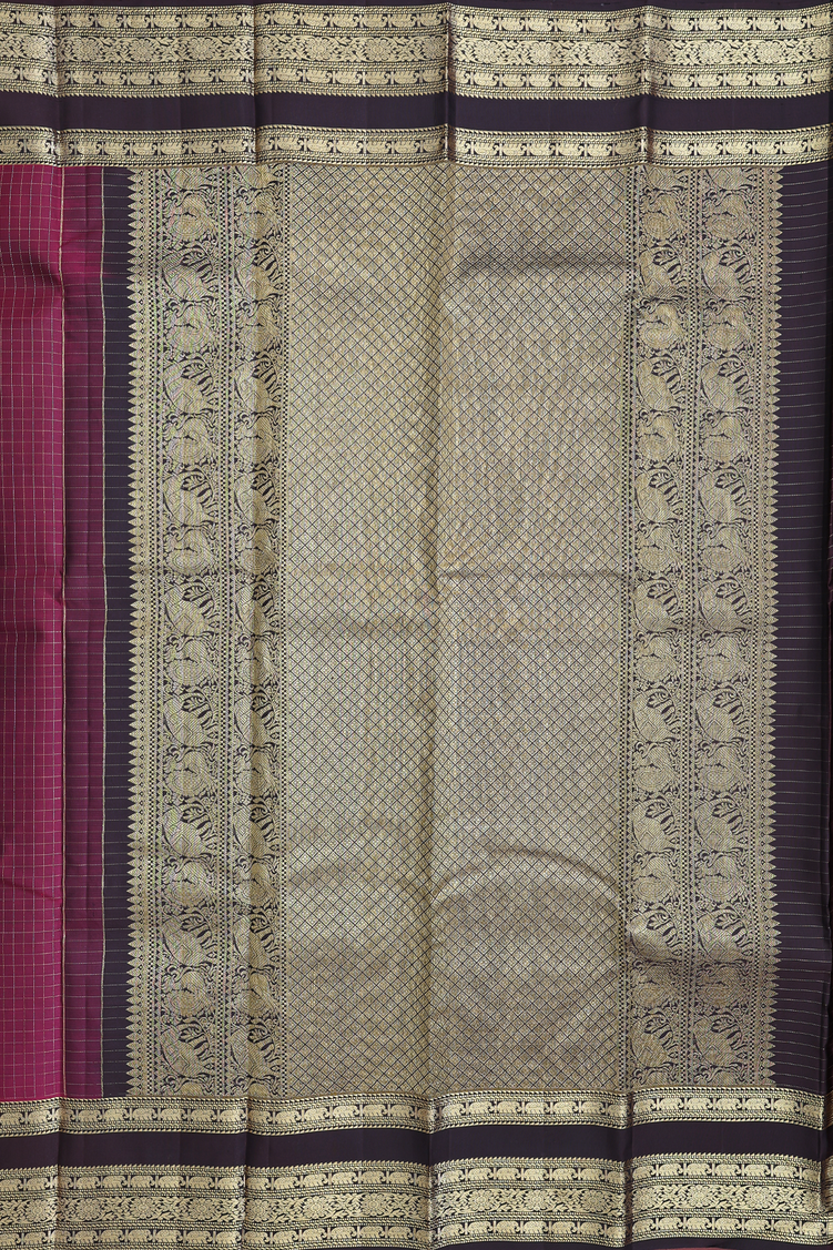 Kanchipuram Silk Saree In Berry Purple With Checks Design