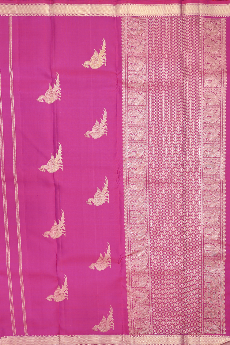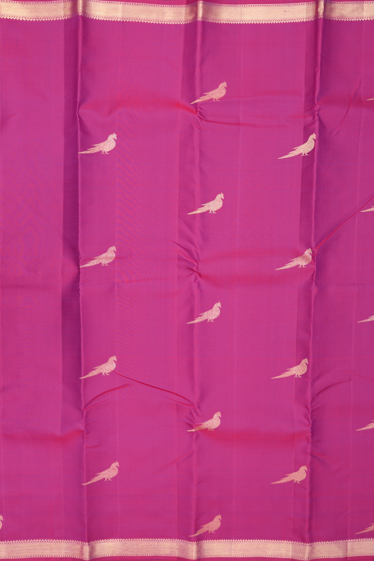 Kanchipuram Silk Saree In Plum Purple With Parrot Buttas