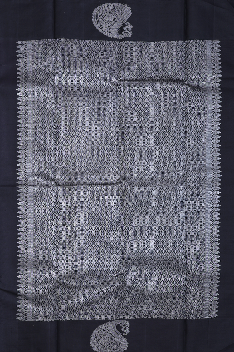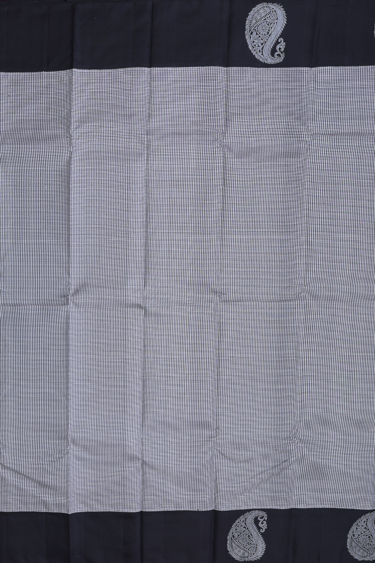 Kanchipuram Silk Saree In Black And White With Checks Design