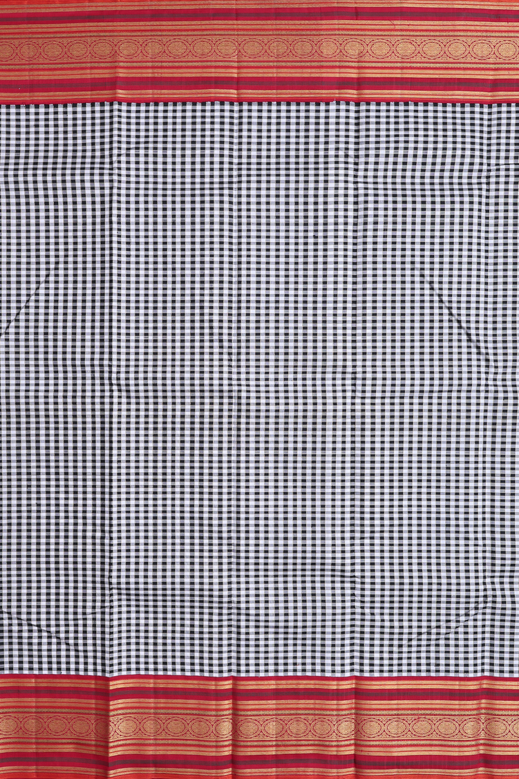 Kanchipuram Silk Saree In Black And White With Checks Design