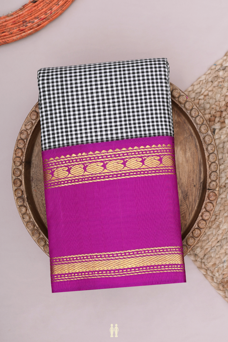 Kanchipuram Silk Saree In Black And White With Checks Design