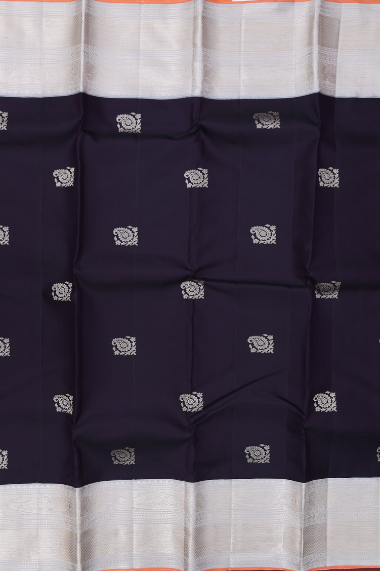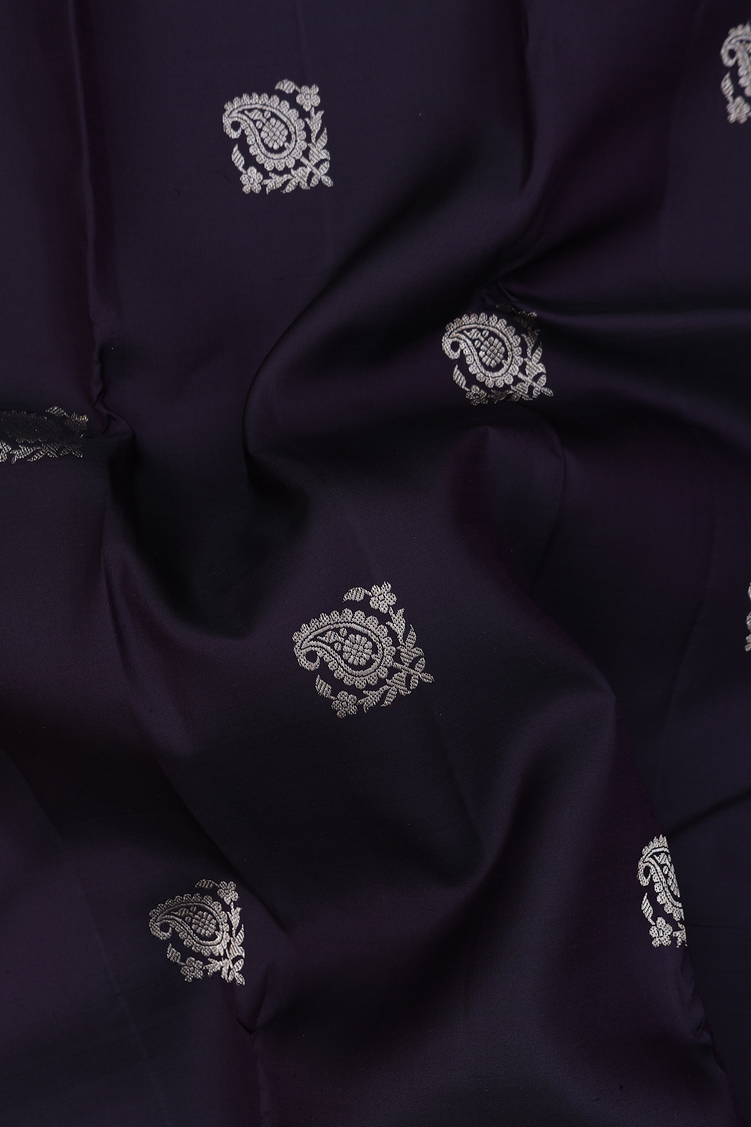 Kanchipuram Silk Saree In Black With Paisley Buttas