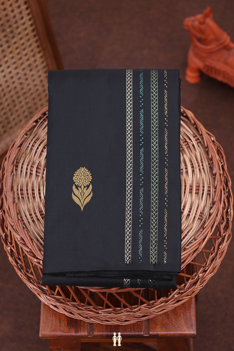 Kanchipuram Silk Saree In Black With Stripes Along Buttas