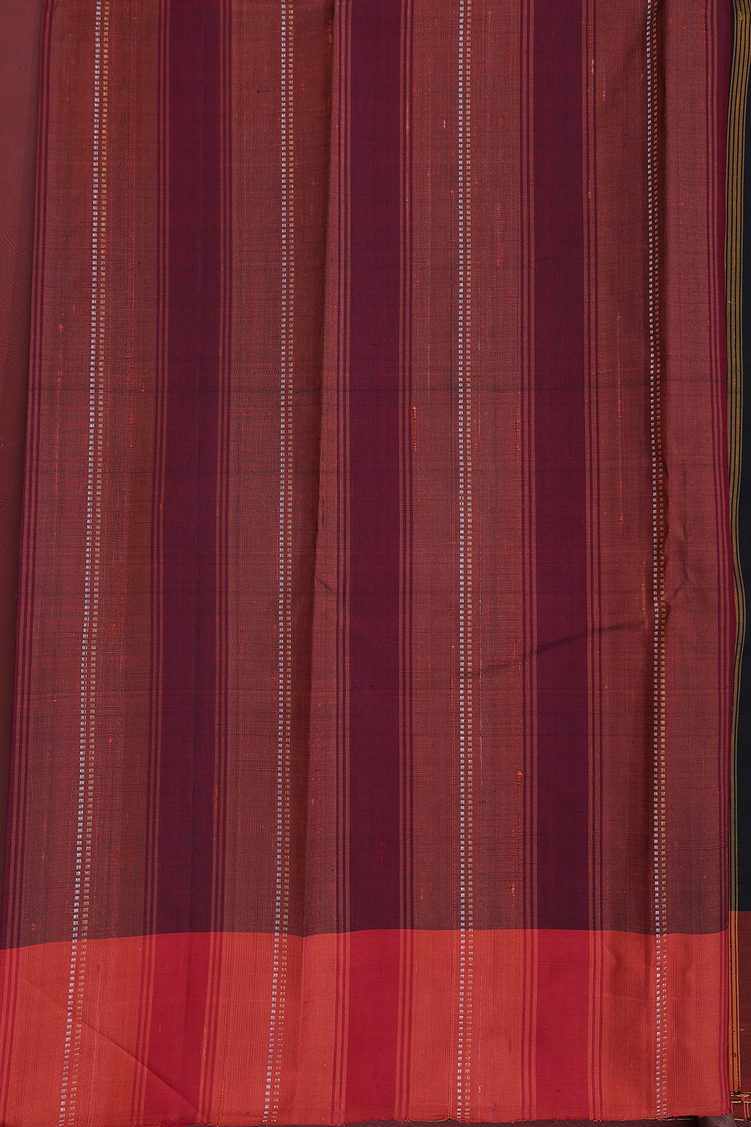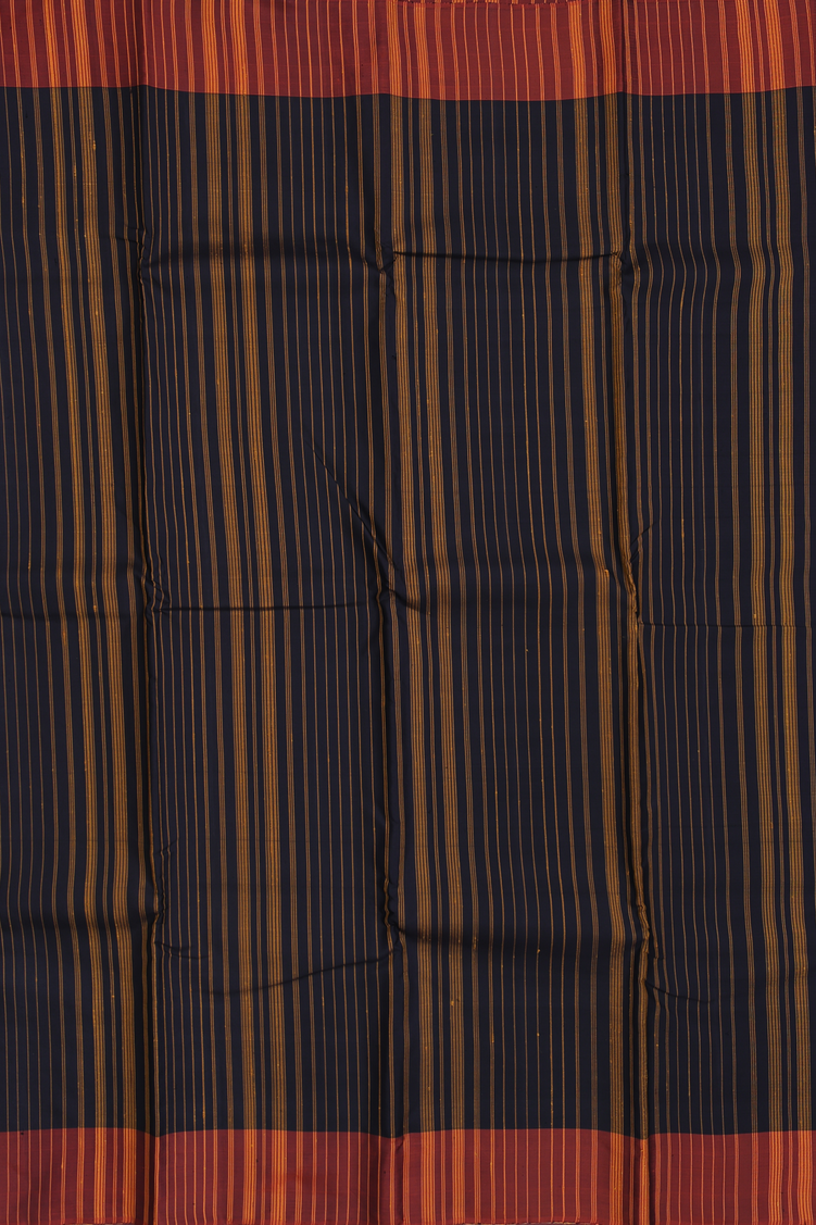 Elevate your ethnic wardrobe with this exquisite Kanchipuram silk saree, a timeless masterpiece crafted from the finest silk. The sophisticated black base is beautifully complemented by elegant stripe detailing, creating a refined aesthetic perfect for both traditional occasions and contemporary celebrations. Known for its lustrous finish and exceptional durability, Kanchipuram silk drapes gracefully while maintaining its shape. This versatile saree seamlessly transitions from festive gatherings to formal events, offering you a piece that embodies heritage and elegance in every wear.