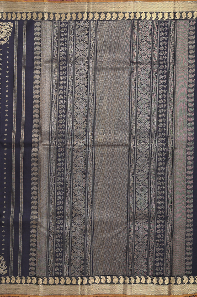 Kanchipuram Silk Saree In Black With Zari Buttis