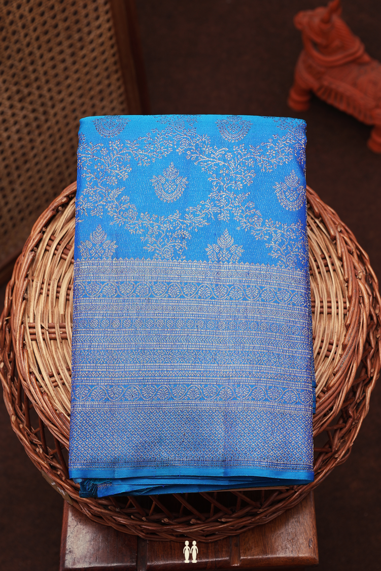 Kanchipuram Silk Saree In Blue With Brocade Design