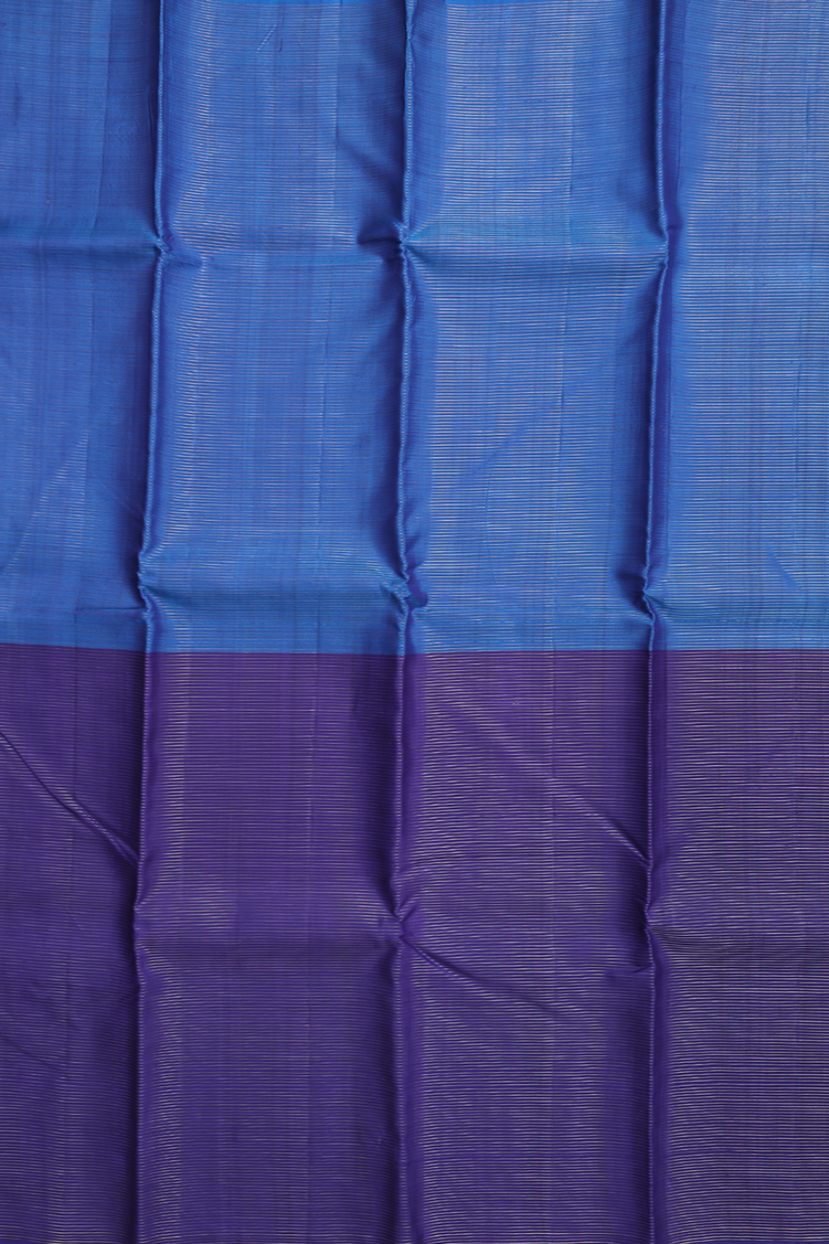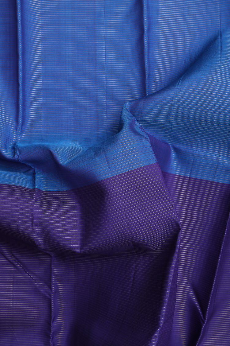 Kanchipuram Silk Saree In Blue With Half And Half Design