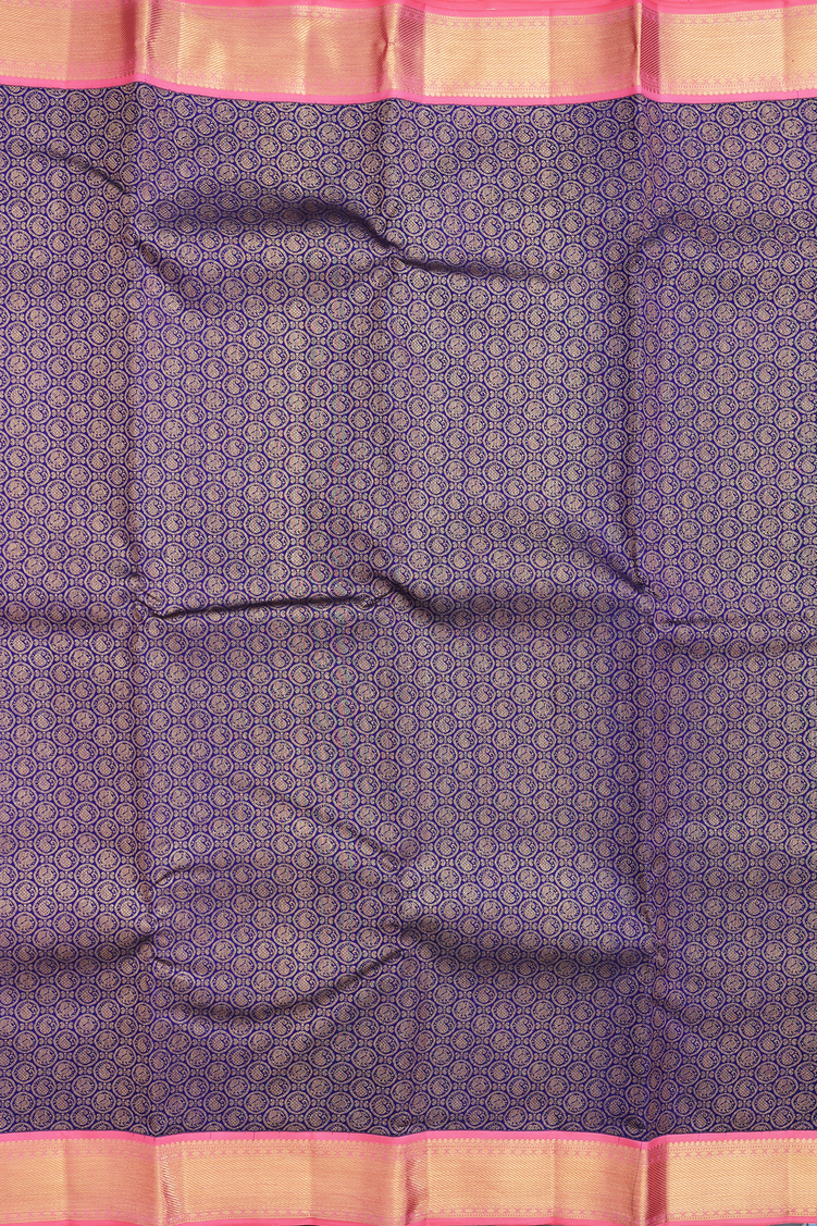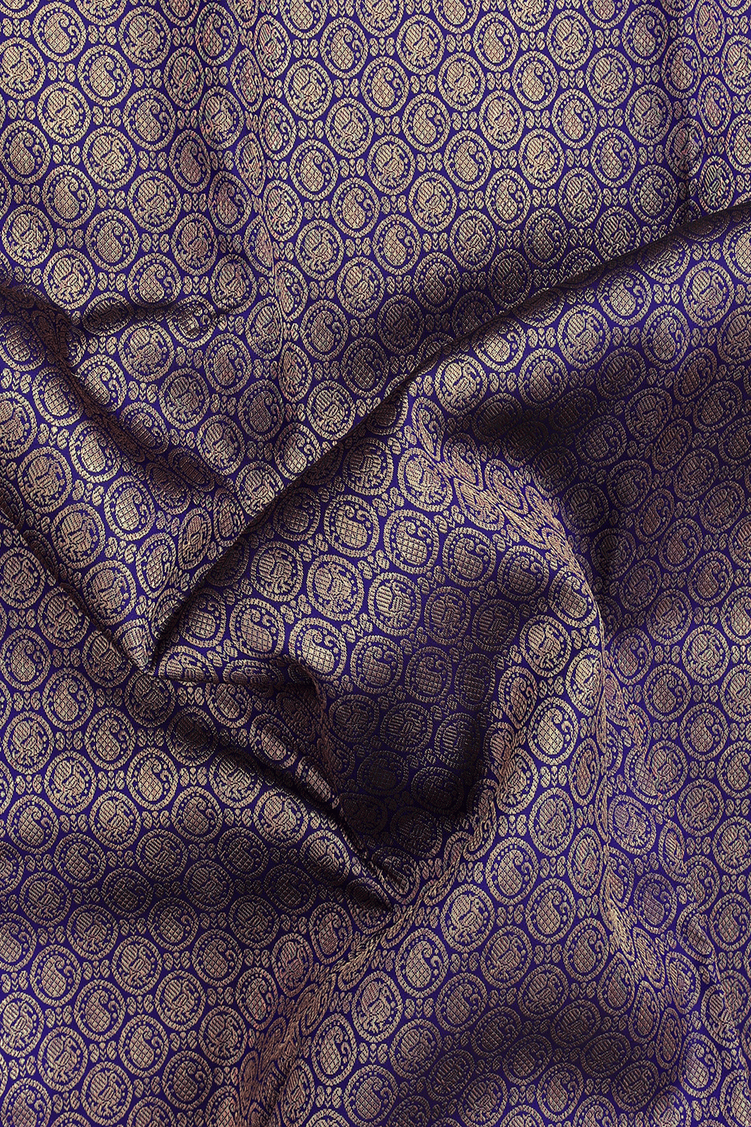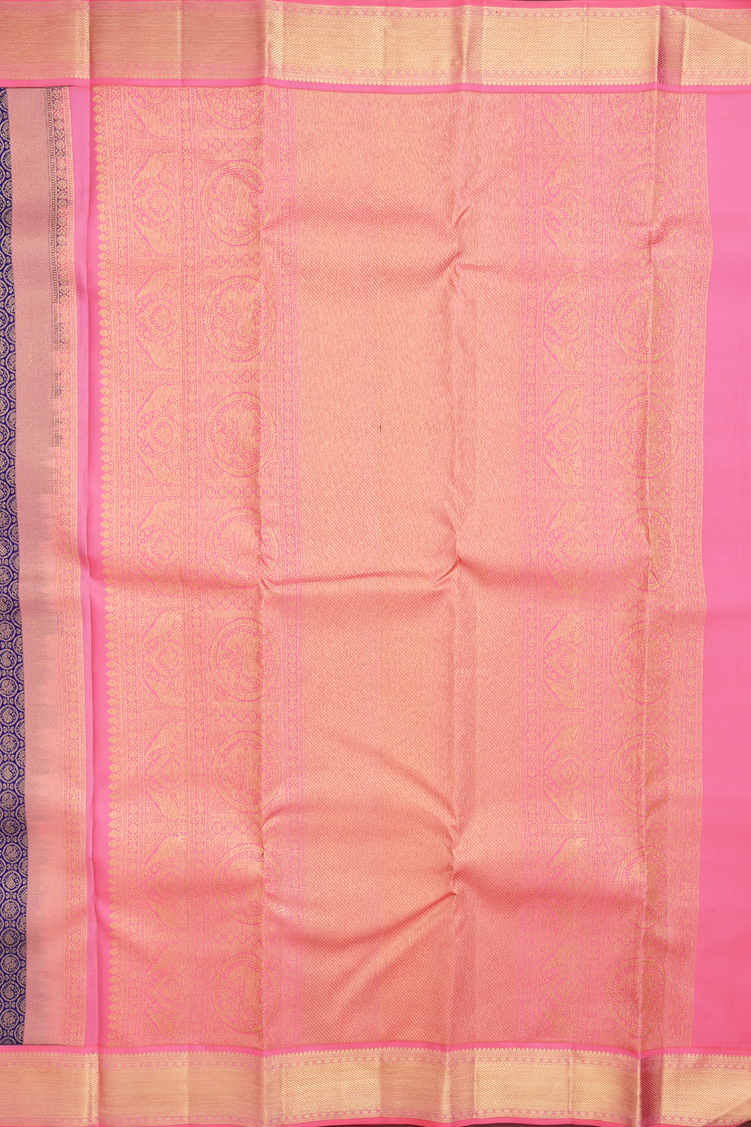 Kanchipuram Silk Saree In Blue With Paisley And Peacock Design