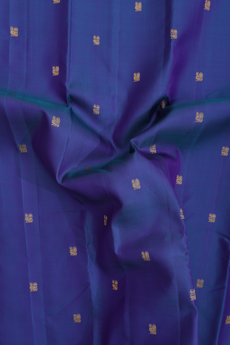 Kanchipuram Silk Saree In Blue With Peacock Buttas