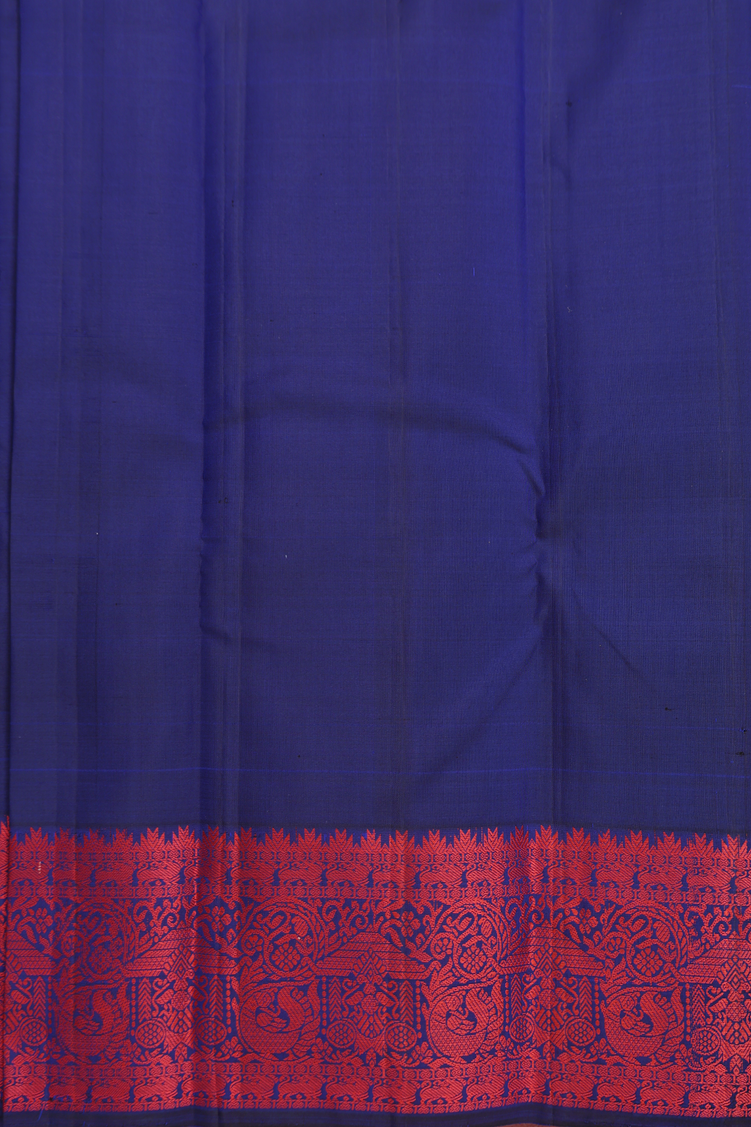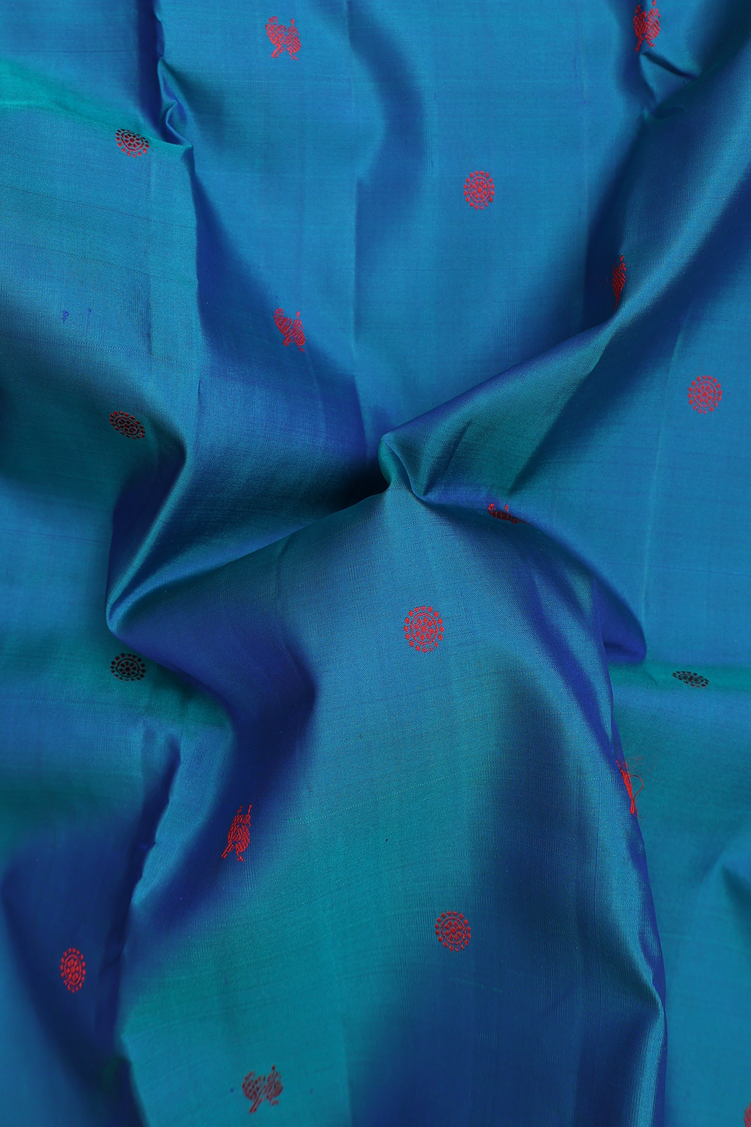 Kanchipuram Silk Saree In Blue With Peacock Buttas