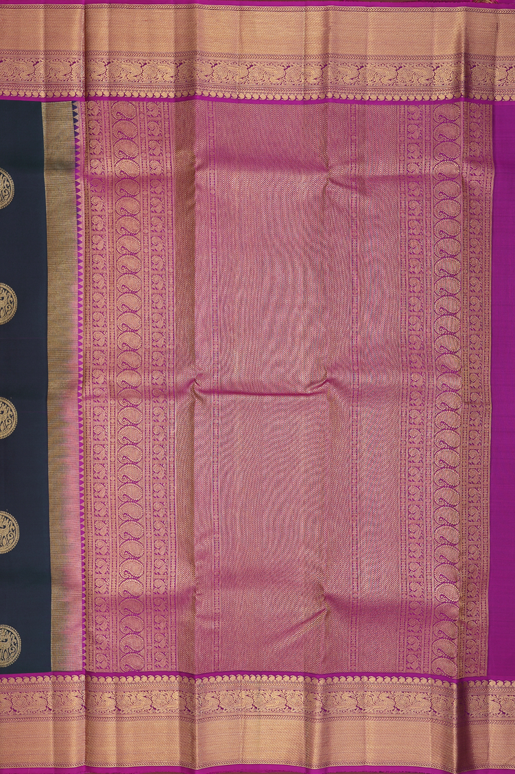 Kanchipuram Silk Saree In Bottle Green With Chakram Buttas