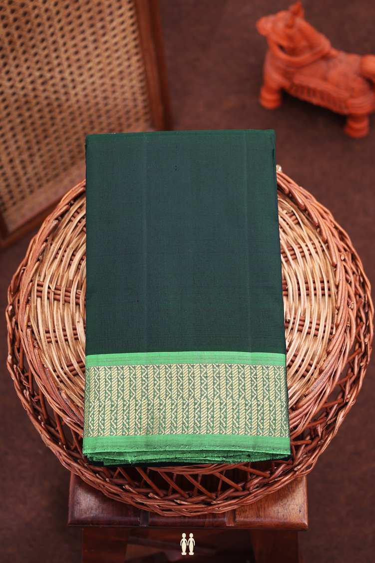 Kanchipuram Silk Saree In Bottle Green With Zari Border