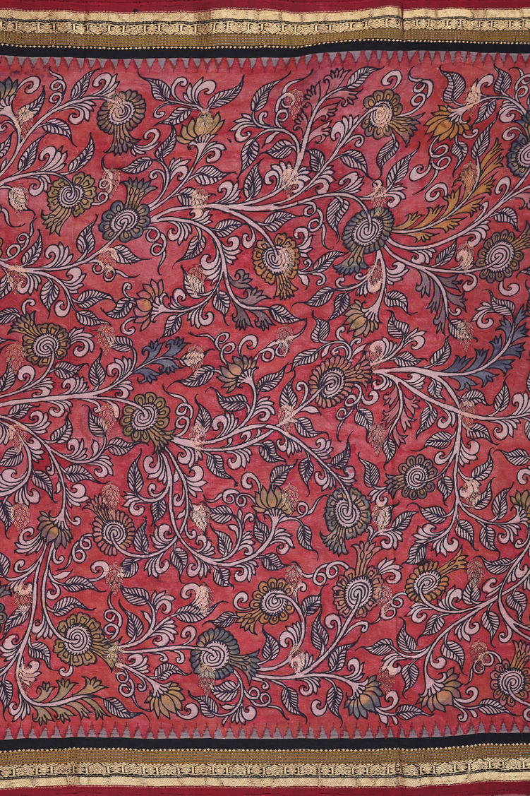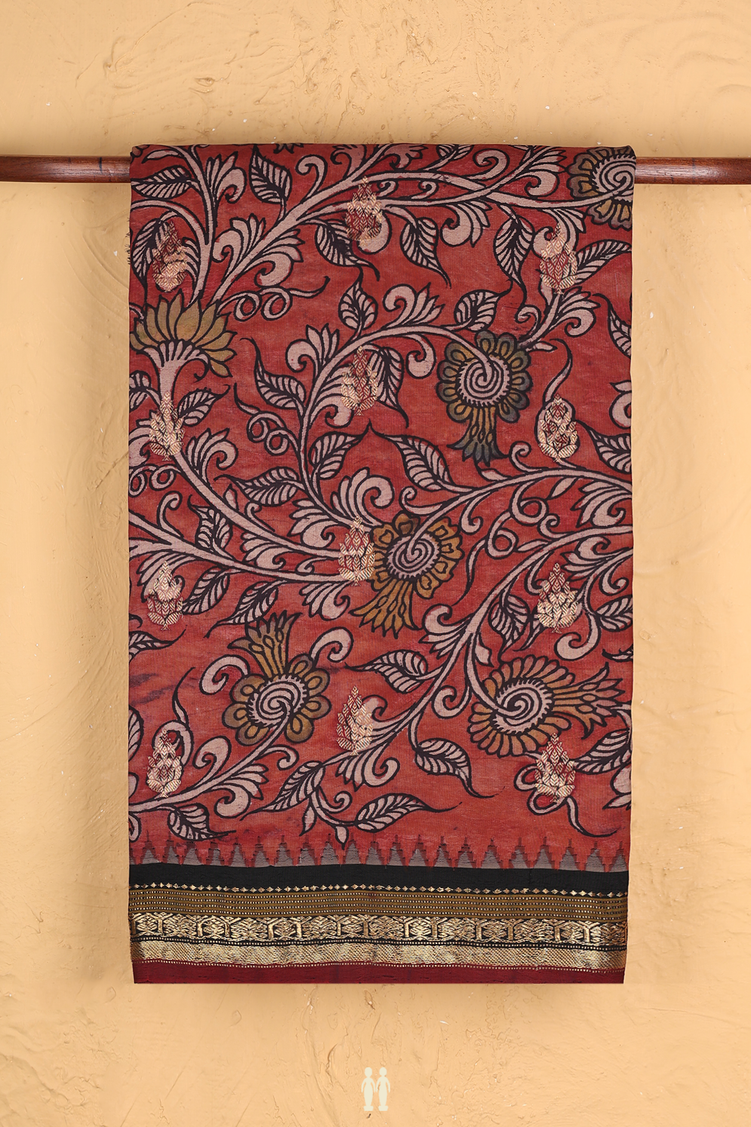 Kanchipuram Silk Saree In Brick Red With Floral Design