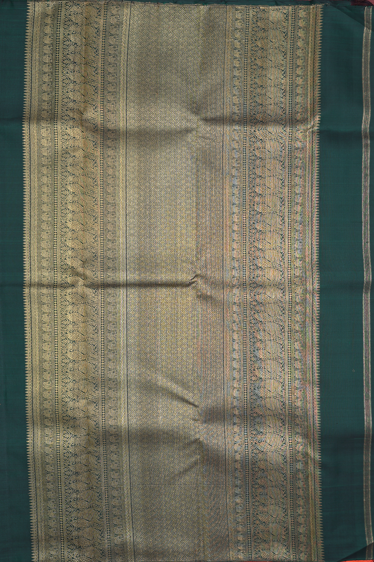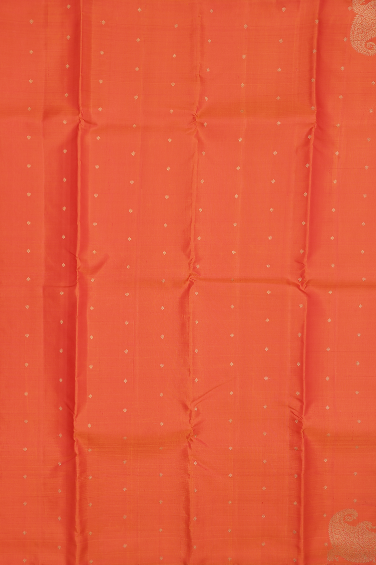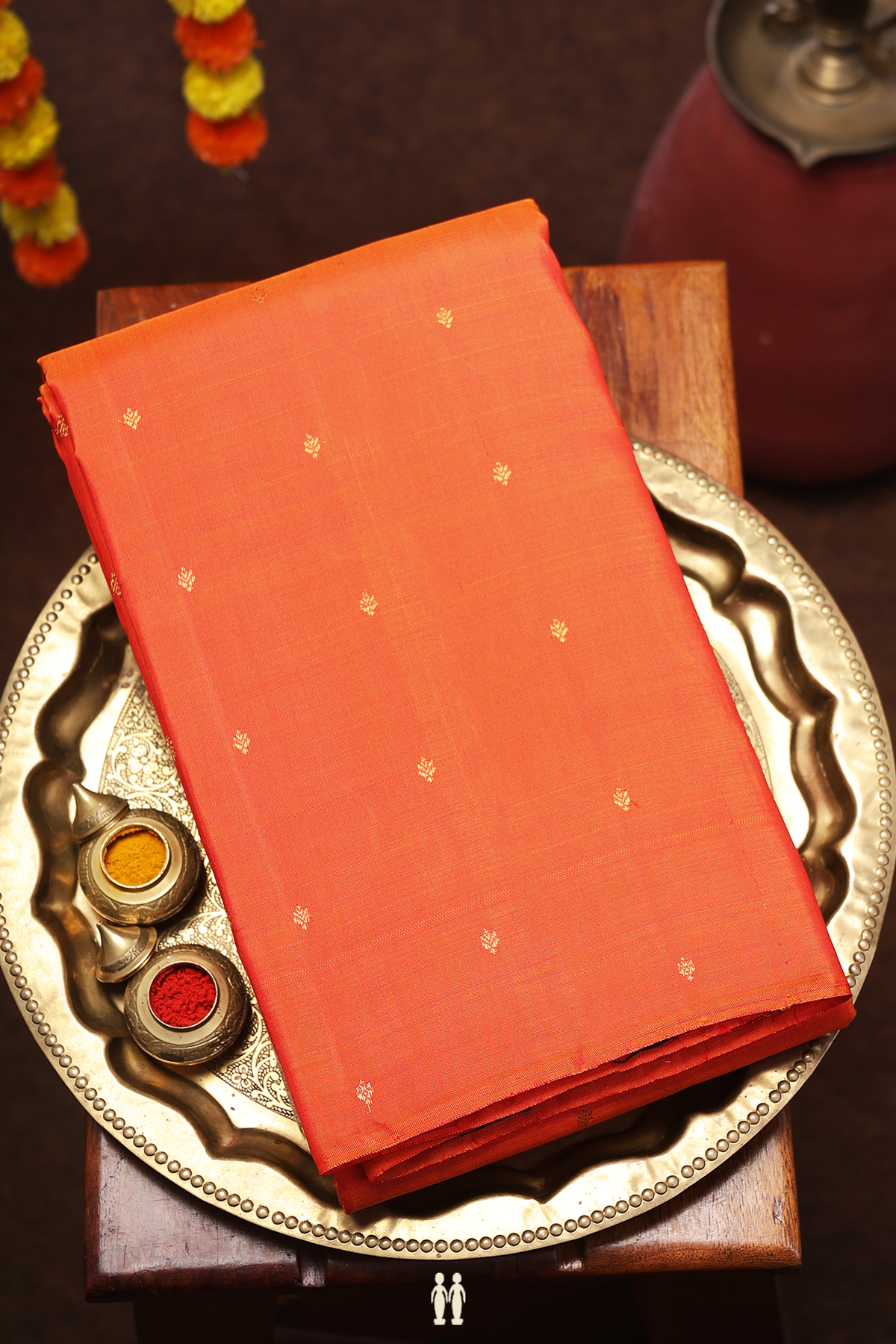 Kanchipuram Silk Saree In Bright Orange With Zari Buttis