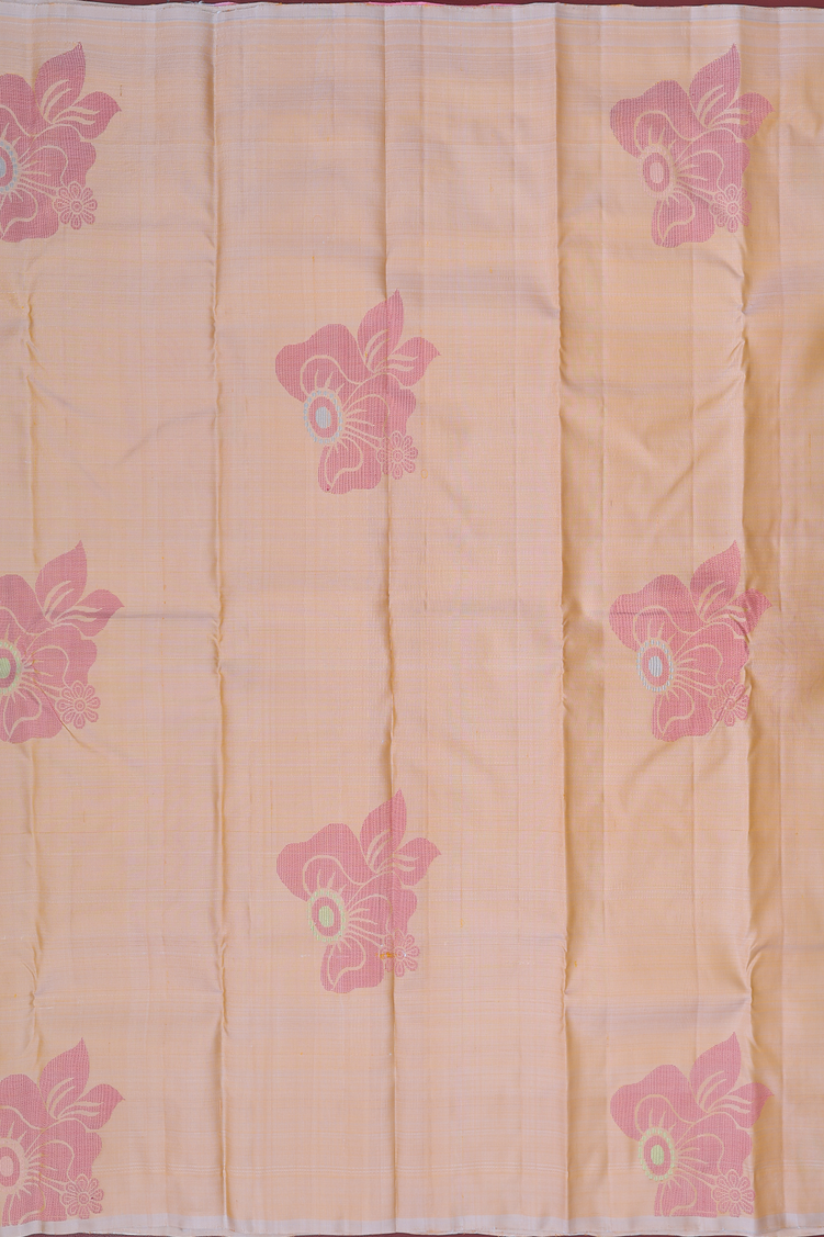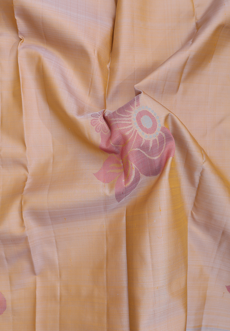 Elevate your ethnic wardrobe with this exquisite kanchipuram silk saree, a timeless masterpiece crafted from the finest silk. The rich brown hue provides a versatile canvas, while delicate floral motifs add refined elegance and visual depth. Kanchipuram silk is renowned for its lustrous finish, durability, and graceful drape, making it an ideal choice for weddings, festivals, and special occasions. The intricate weaving showcases traditional craftsmanship passed down through generations. Perfect for those who appreciate authentic Indian textiles and understated sophistication.