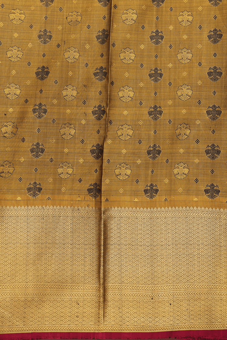 Kanchipuram Silk Saree In Brown With Iruthalai Pakshi Buttas