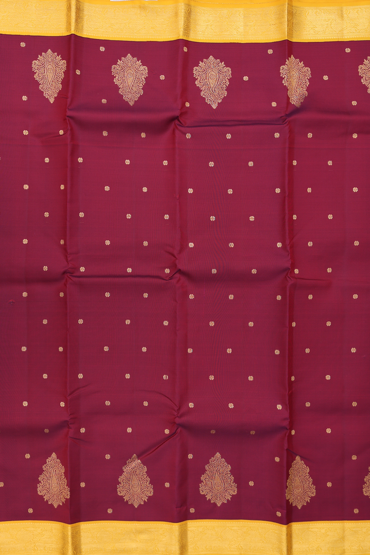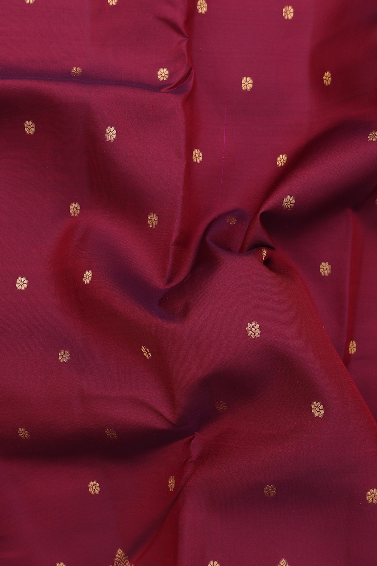 Kanchipuram Silk Saree In Burgundy Red With Floral Buttis