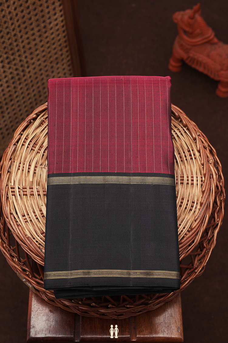 Kanchipuram Silk Saree In Burgundy Red With Stripes Design