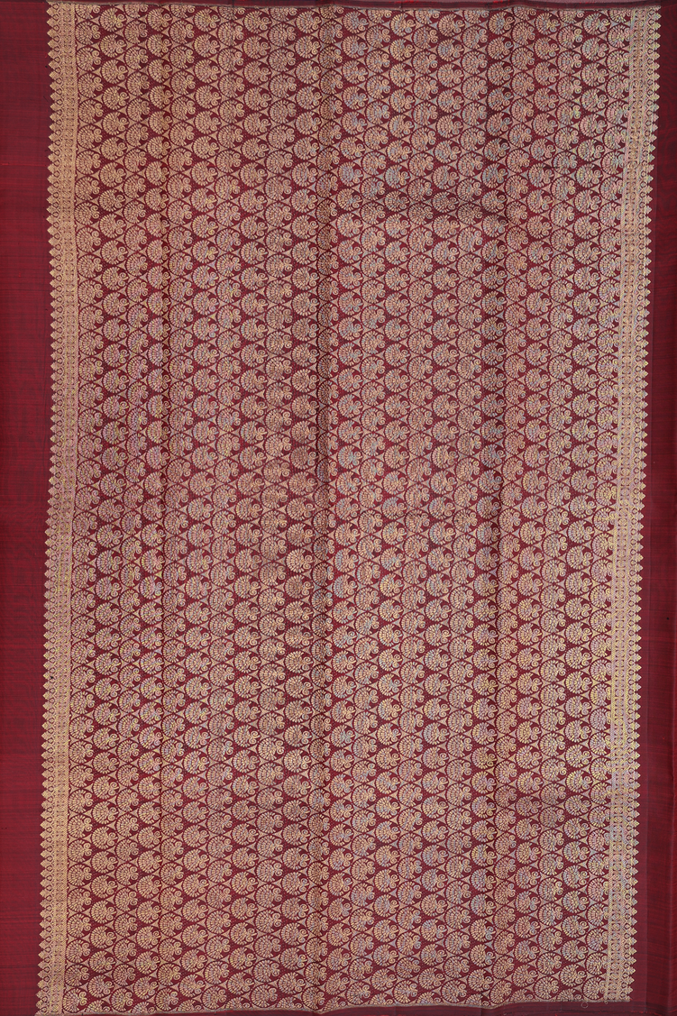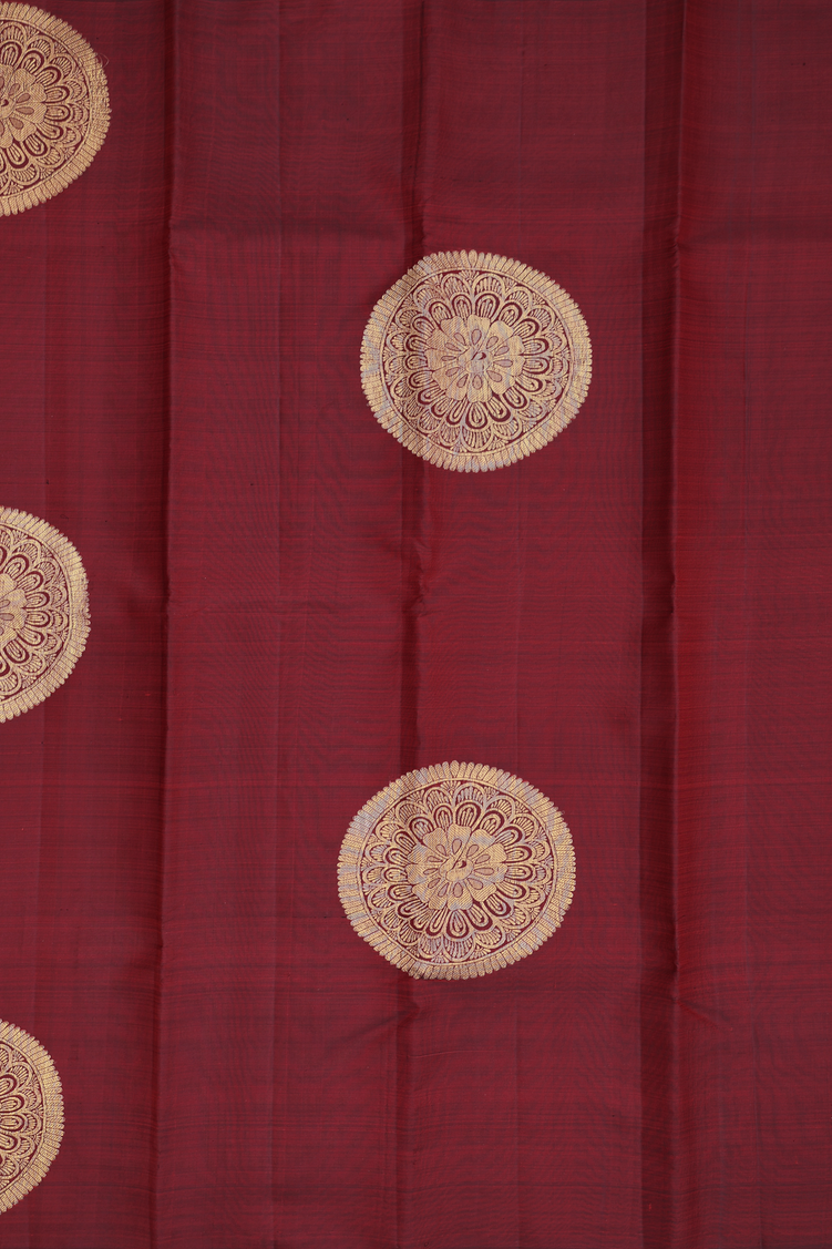 Kanchipuram Silk Saree In Burgundy Red With Zari Motifs
