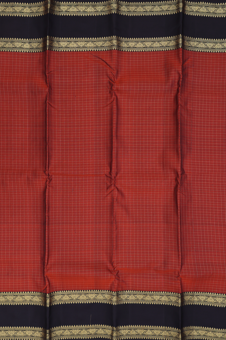 Kanchipuram Silk Saree In Rust Orange With Checks Design