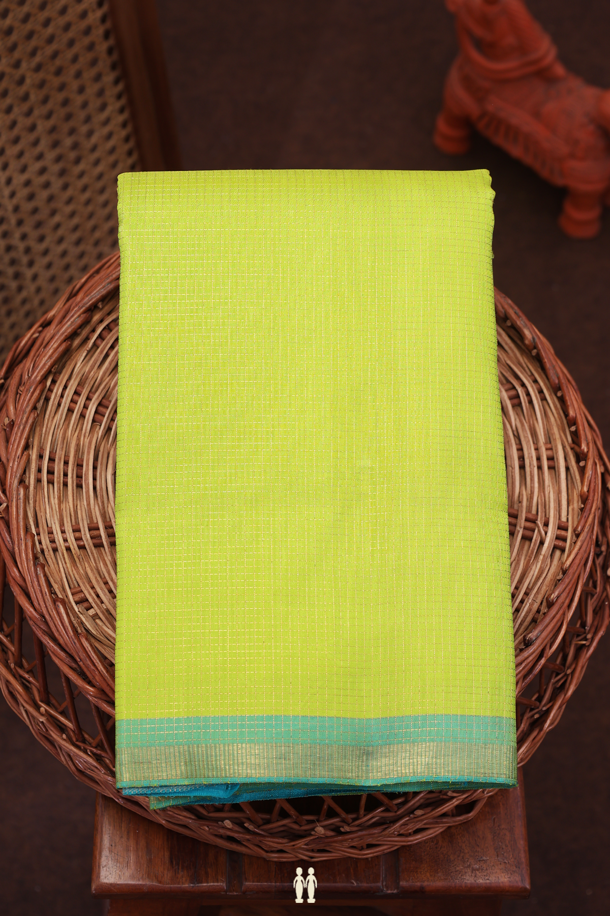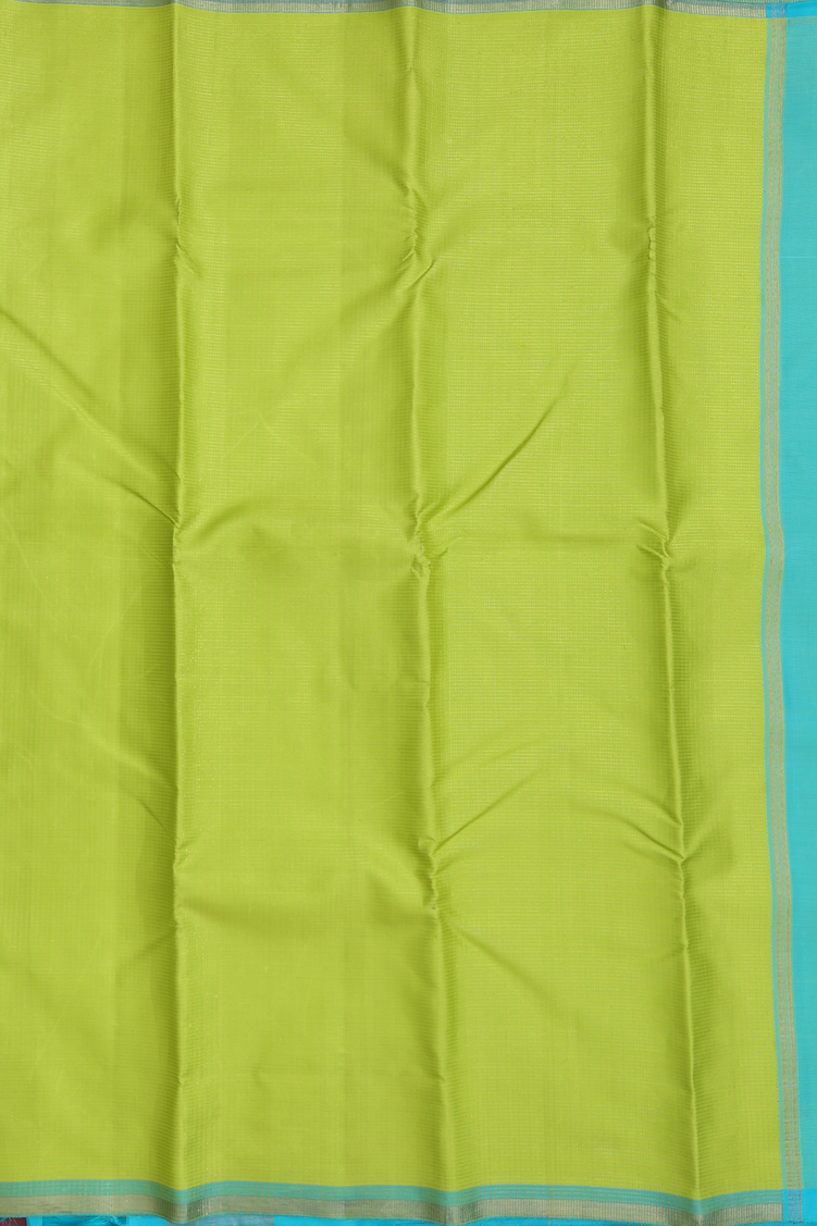 Kanchipuram Silk Saree In Lime Green With Checks Design