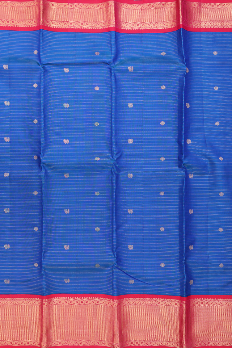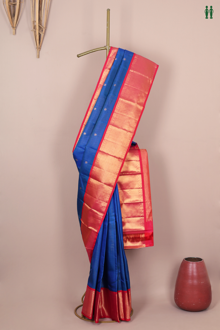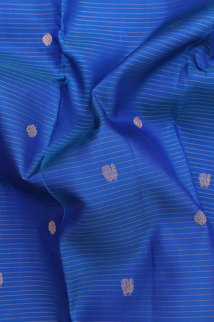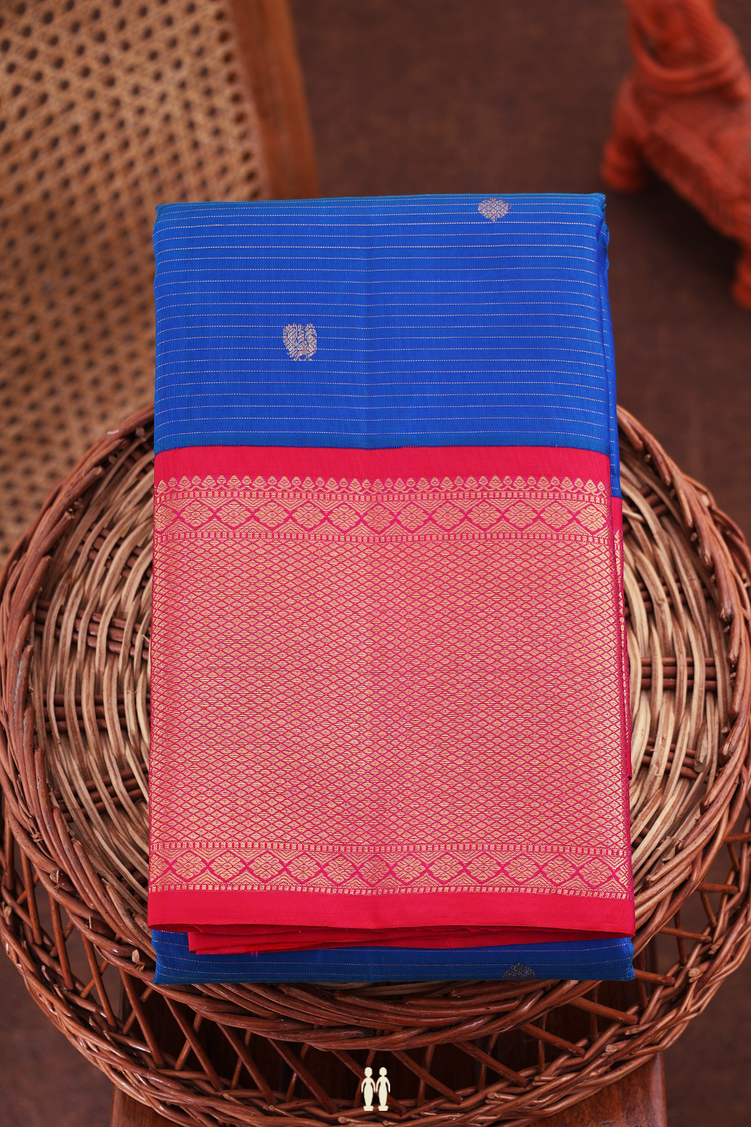 Kanchipuram Silk Saree In Cobalt Blue Stripes Along With Buttas