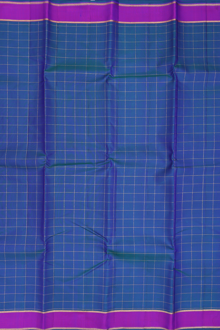 Kanchipuram Silk Saree In Capri Blue With Checks Design