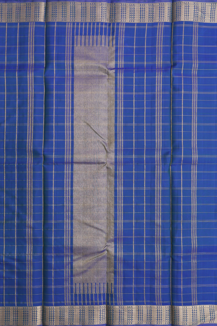 Kanchipuram Silk Saree In Capri Blue With Checks Design