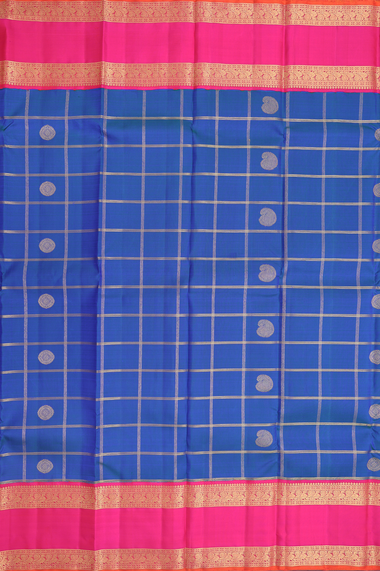 Kanchipuram Silk Saree In Cobalt Blue With Checks Design