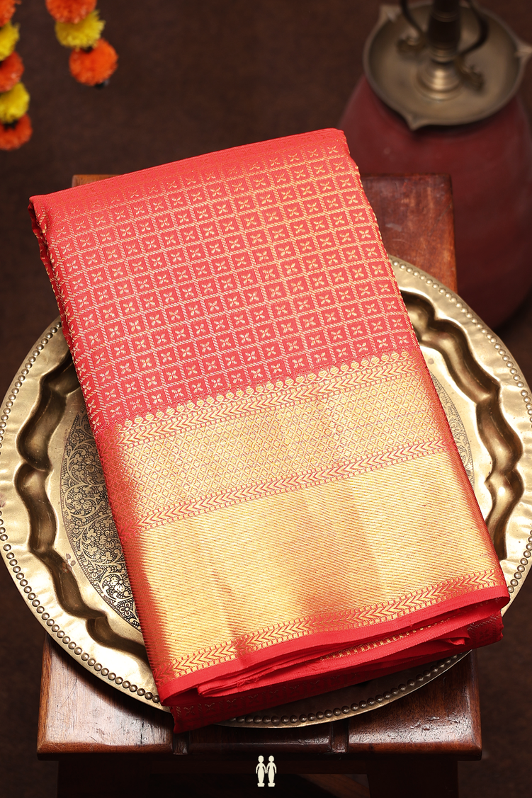 Kanchipuram Silk Saree In Chilli Red With Brocade Pattern
