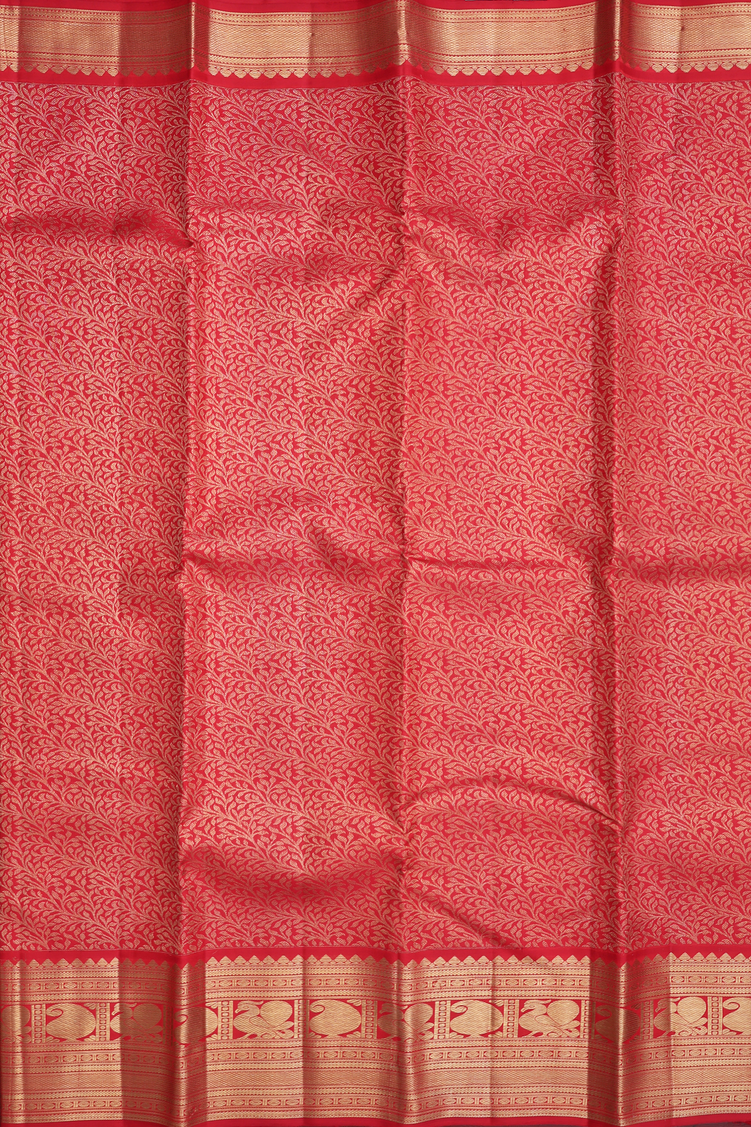 Kanchipuram Silk Saree In Chilli Red With Leaf Design