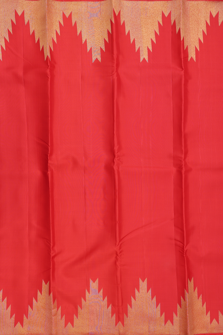 Kanchipuram Silk Saree In Scarlet Red With Temple Border