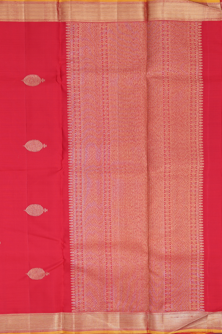 Kanchipuram Silk Saree In Chilli Red With Zari Buttas