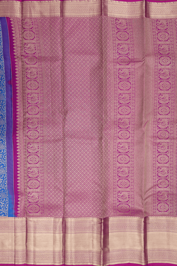 Kanchipuram Silk Saree In Cobalt Blue With Brocade Design