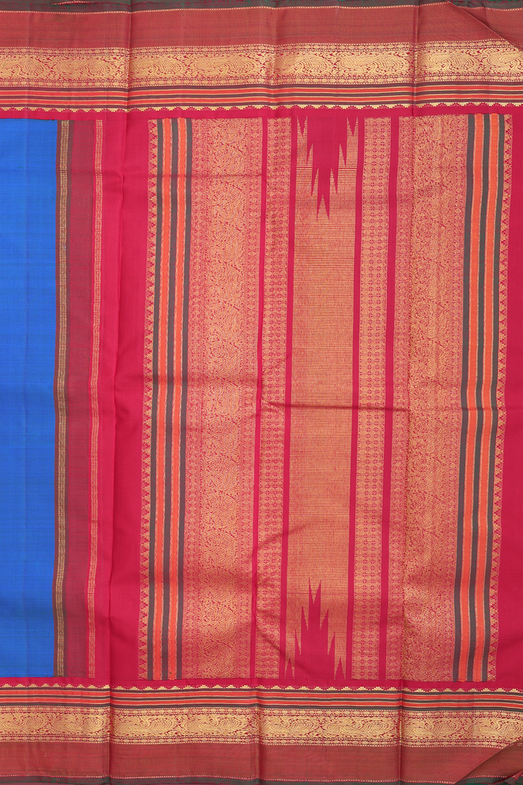 Kanchipuram Silk Saree In Cobalt Blue With Peacock Border