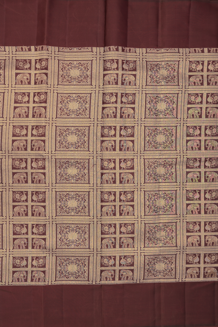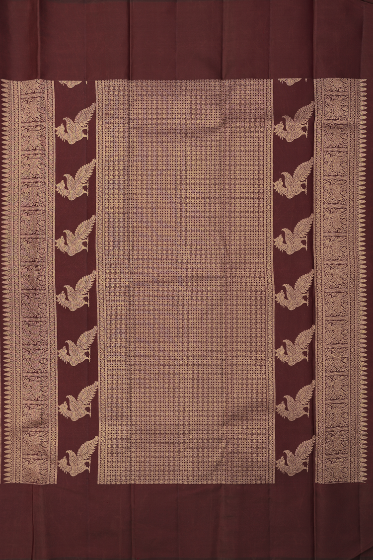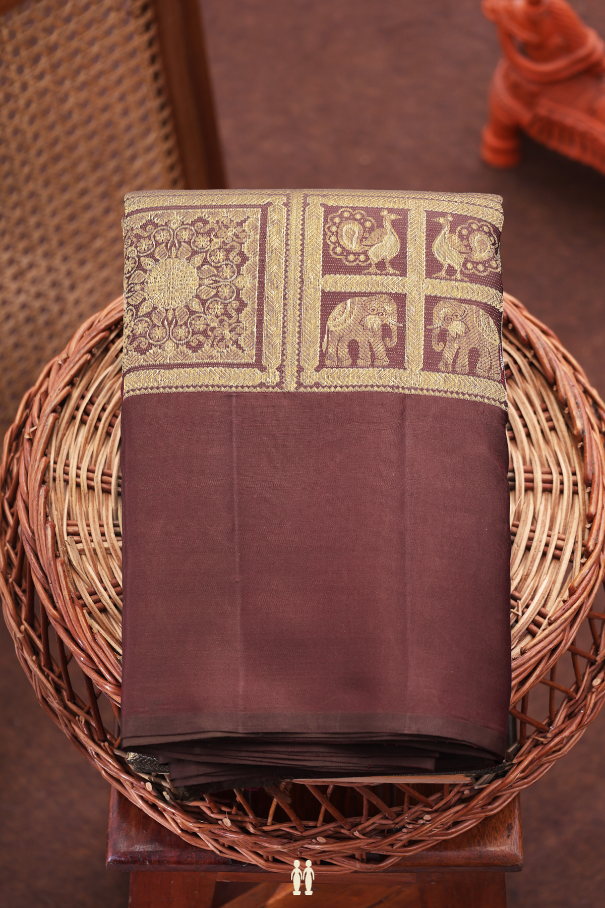 Kanchipuram Silk Saree In Coffee Brown With Brocade Design