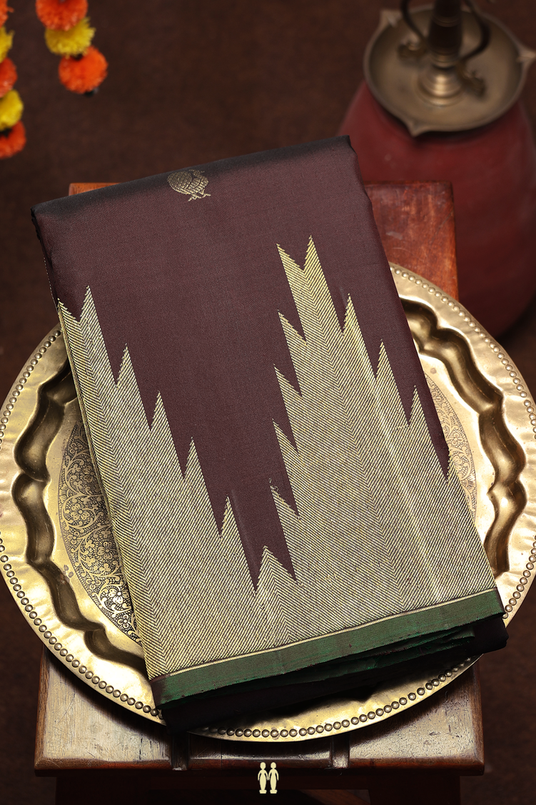 Kanchipuram Silk Saree In Coffee Brown With Peacock Buttas