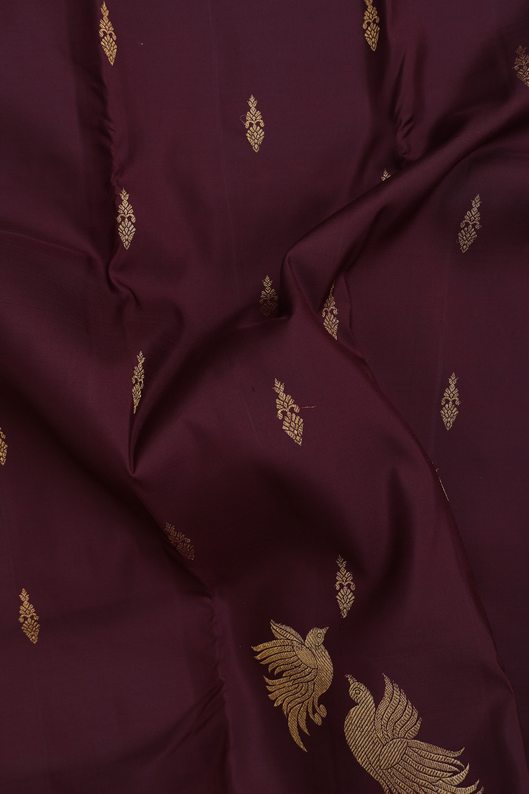 Kanchipuram Silk Saree In Coffee Brown With Zari Buttas