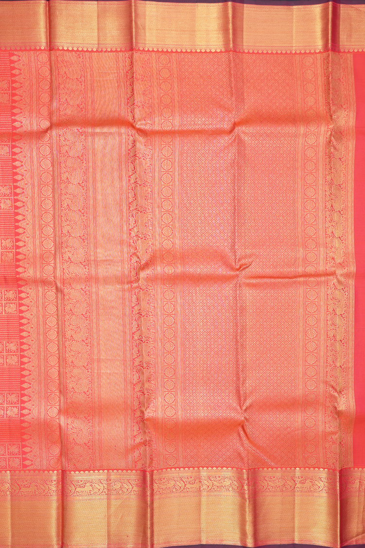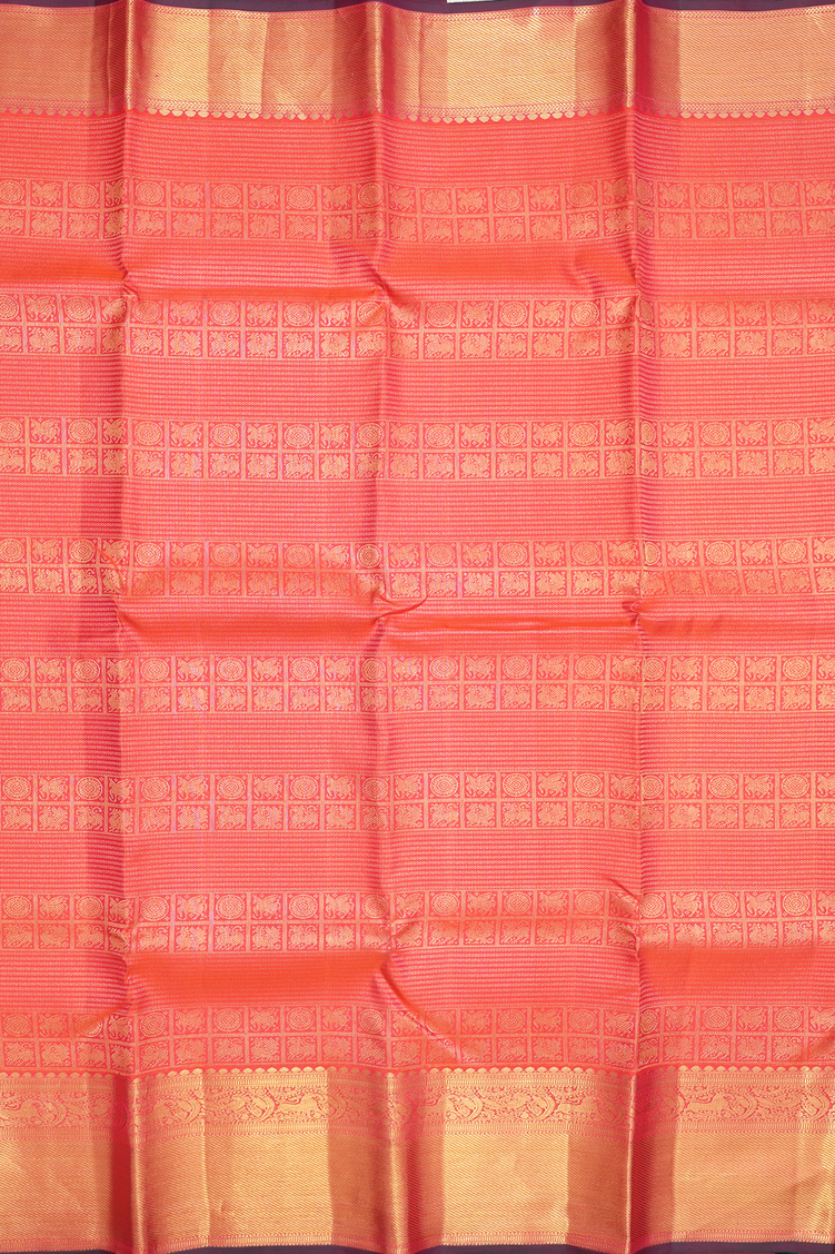 Kanchipuram Silk Saree In Coral Orange With Brocade Design