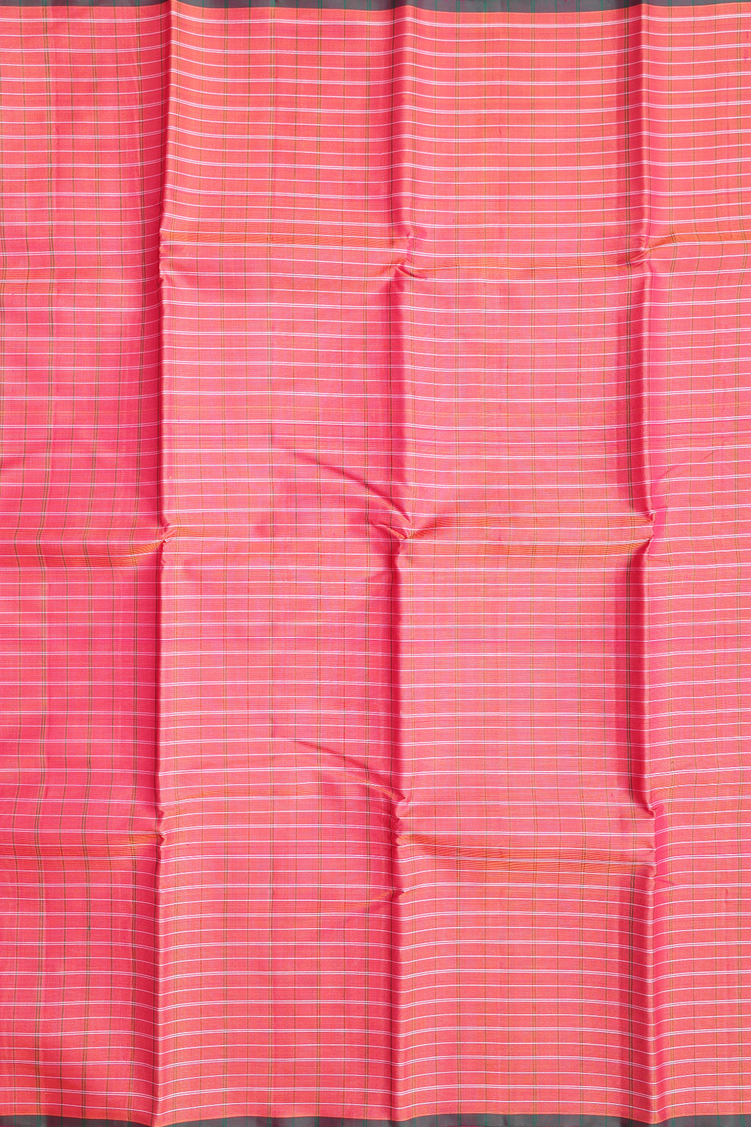 Kanchipuram Silk Saree In Coral Orange With Checks Design