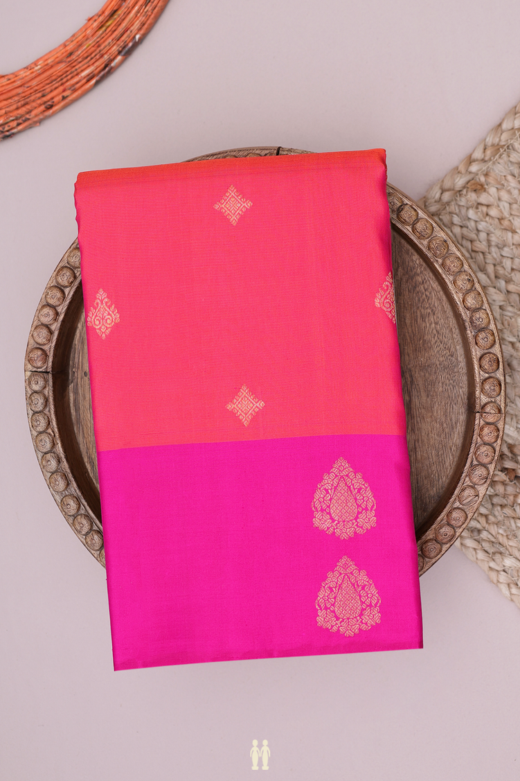 Kanchipuram Silk Saree In Coral Pink With Diamond Buttas