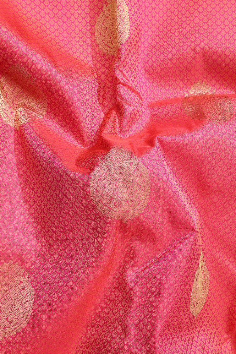 Kanchipuram Silk Saree In Coral Pink With Jacquard Pattern