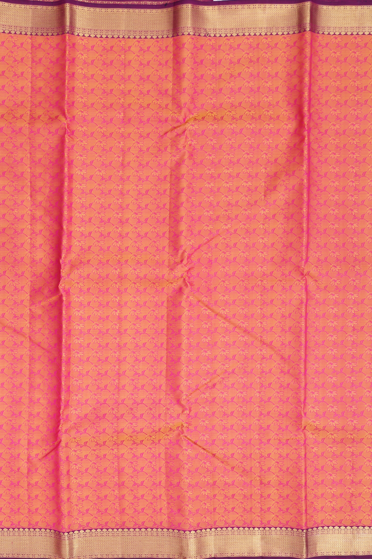 Kanchipuram Silk Saree In Coral Pink With Jacquard Pattern