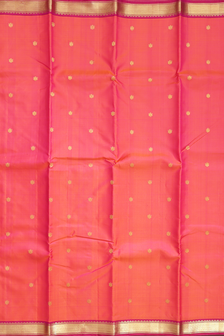 Kanchipuram Silk Saree In Coral Pink With Paisley Buttas