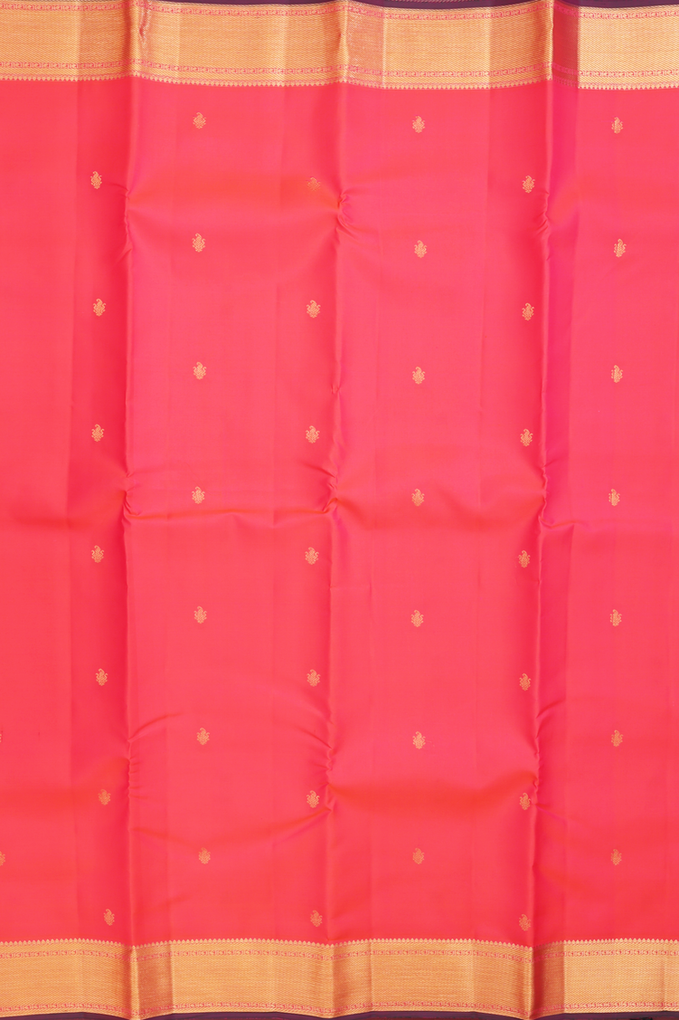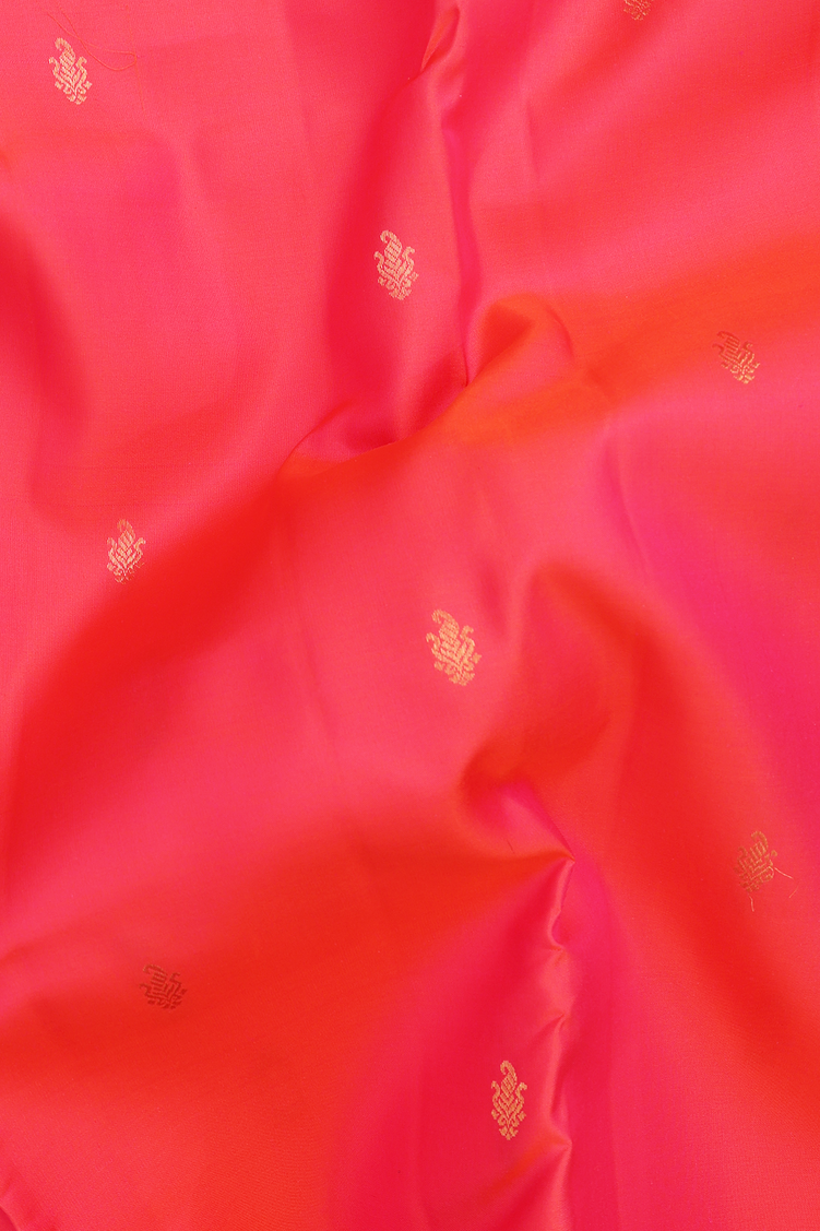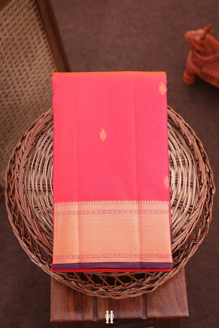 Kanchipuram Silk Saree In Coral Pink With Paisley Buttis