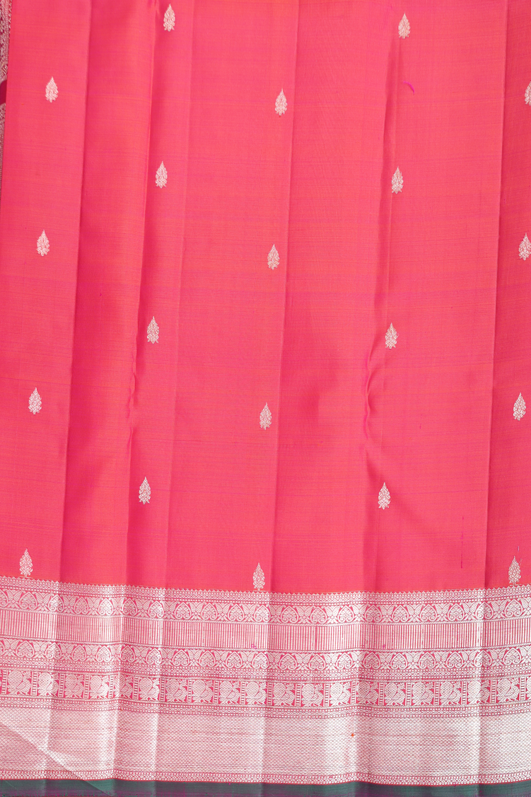 Kanchipuram Silk Saree In Coral Pink With Square Design