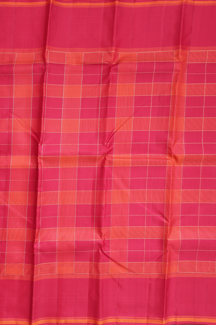 Kanchipuram Silk Saree In Crimson Red With Checks Design