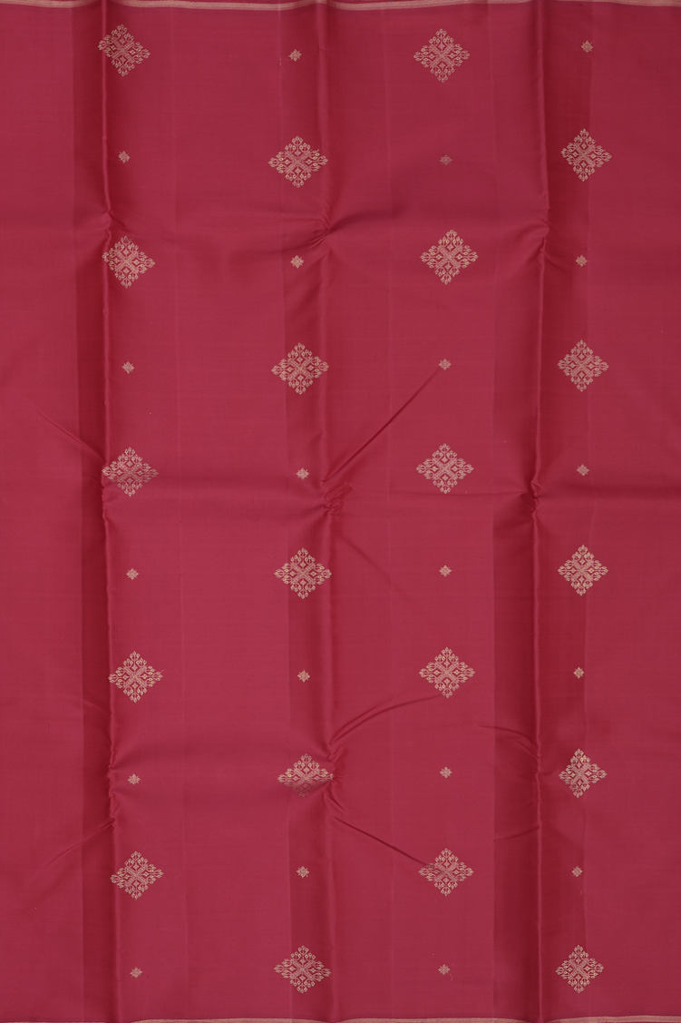 Kanchipuram Silk Saree In Crimson Red With Diamond Buttas
