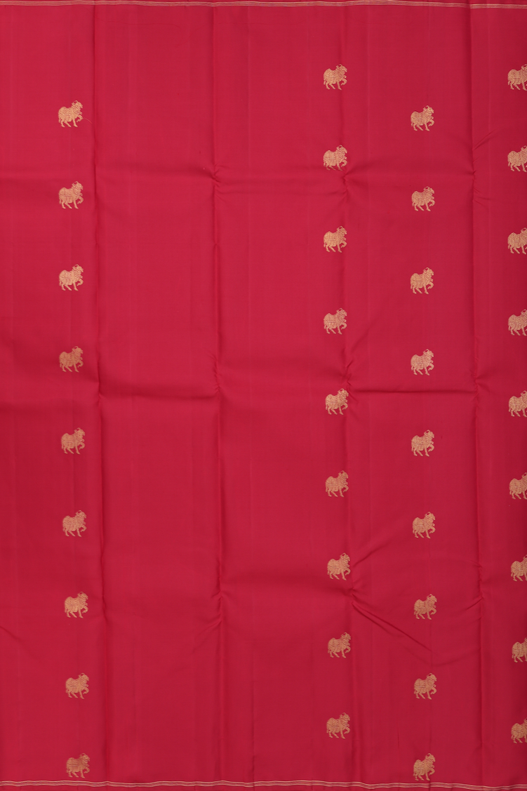 Kanchipuram Silk Saree In Crimson Red With Zari Buttas